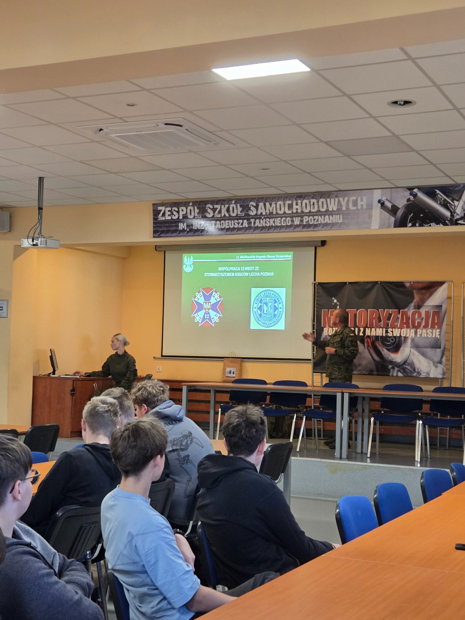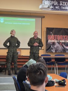 To temat wizyty żołnierzy Wojsk Obrony Terytorialnej w Zespole Szkół Samochodowych. W czasie spotkania uczniowie poznali arkana rekrutacji i służby w wojsku. Dokonano również militarnej analizy sytuacji geopolitycznej w kontekście wojny hybrydowej i zagrożenia ze strony dronów dla Polski. Uczniowie mieli dużo pytań i wykazali się szeroką wiedzą na temat sytuacji politycznej w kontekście wojny w Ukrainie oraz zagrożeń dla bezpieczeństwa Polski. Spotkanie poszerzało treści programowe z edukacji dla bezpieczeństwa i systemu doradztwa zawodowego.